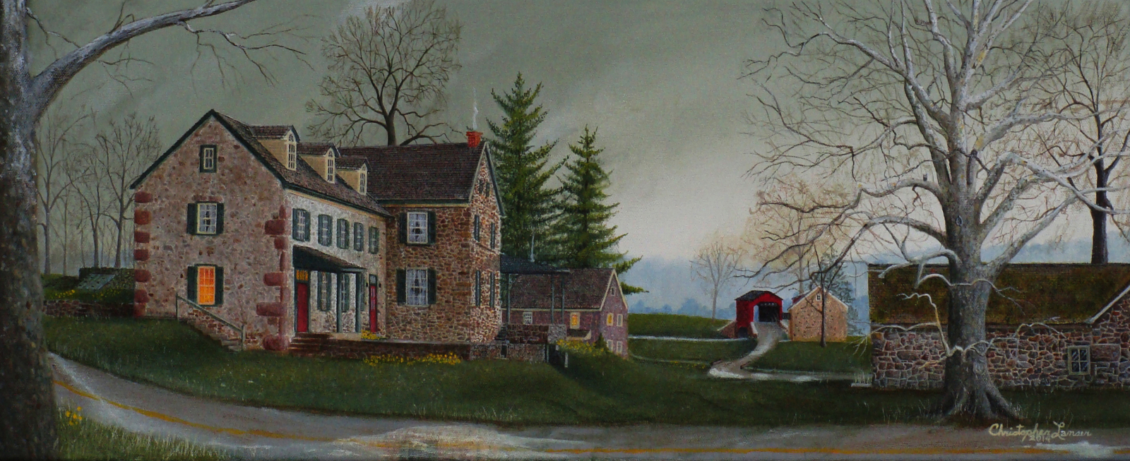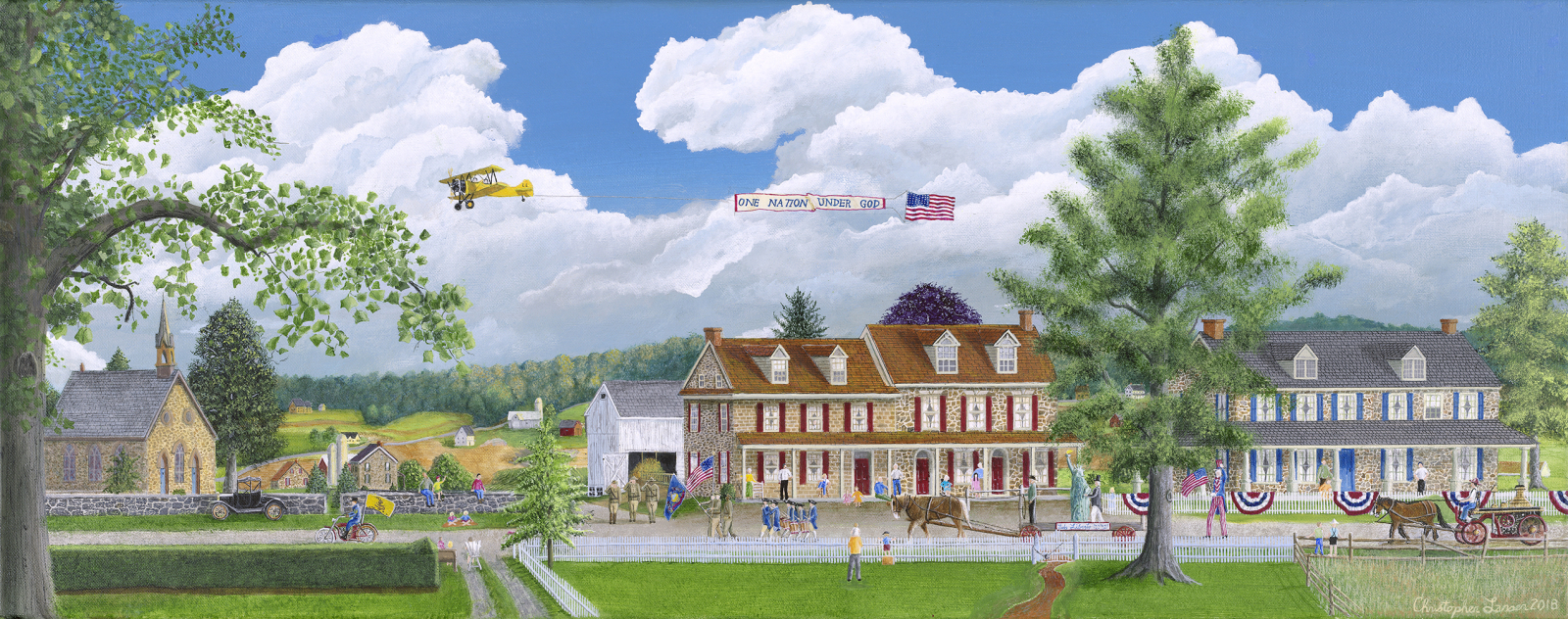 Take a step out of the hectic, confusing world in which we live and travel back to a simpler time... to a place of Community, Family, and Faith. The art of Christopher Lanser is a gentle blending of folkart stylings and realism, giving a soft, nostalgic look at our world. The buildings and communities depicted really exist - and the people and animals - just as nice as you might imagine!