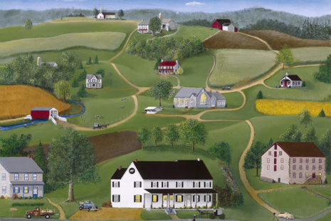 Looking north from the village of White Horse, it's another sunny day greeting the residents of this area of farms, mills, and churches. And of course the White Horse Inn gets ready to serve its customers as it has since the 1700's.